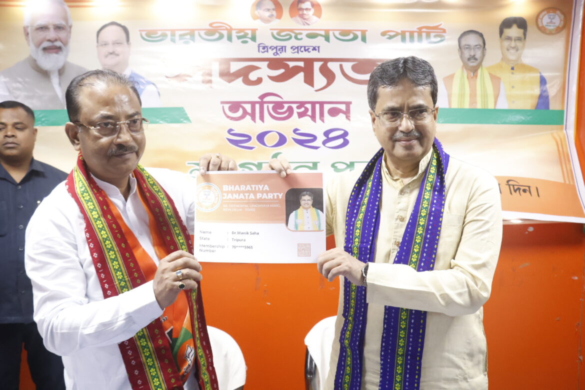 আগরতলা : ২০২৩ সালে বিজেপির সর্বভারতীয় স্তরে সদস্যতা অভিযানে প্রায় ১৮ কোটি মেম্বার হয়েছিল। ত্রিপুরা রাজ্যে ২০১৯ সালের আগে ১ লক্ষ ২৪ হাজার মেম্বার ছিল। ২০১৯ সালে ৬ লক্ষ ৫০ হাজার মেম্বার বৃদ্ধি পায়। এবার ত্রিপুরায় লক্ষ্যমাত্রা ১২ লাখ সদস্য সংগ্রহ। লক্ষ্যমাত্রায় পৌঁছানোর লক্ষ্যে ইতিমধ্যে কর্মশালা করা হয়েছে। ভারতীয় জনতা পার্টি একটা পরিবারের মতো। সদস্যতা অভিযানের মাধ্যমে বুথ স্তর পর্যন্ত যাওয়া হবে। মঙ্গলবার সদস্যপদ গ্রহণ করে একথা বললেন মুখ্যমন্ত্রী ডাঃ মানিক সাহা।ভারতীয় জনতা পার্টির সদস্যতা অভিযান শুরু। সোমবার দেশের প্রধানমন্ত্রী নরেন্দ্র মোদী ও বিজেপির সর্বভারতীয় সভাপতির হাত ধরে সুচনা হয় বিজেপির ২০২৪ সালের সদস্যতা অভিযান। মঙ্গলবার ত্রিপুরায় শুরু হয় এই অভিযান।ত্রিপুরা প্রদেশ বিজেপি কার্যালয়ে সদস্যপদ গ্রহণ করেন প্রথমে মুখ্যমন্ত্রী ডাঃ মানিক সাহা। যে কেউ অন লাইন কিংবা অফ লাইনে বিজেপির সদস্য হতে পারবেন। সদস্যতা অভিযানে প্রদেশ বিজেপির লক্ষ্যমাত্রা ধরা হয়েছে ১২ লাখ সদস্য সংগ্রহ।প্রদেশ বিজেপির উদ্যোগে দলীয় কার্যালয়ে এক অনুষ্ঠানের মধ্যদিয়ে সুচনা হয় প্রদেশ বিজেপির সদস্যতা অভিযান। এদিন প্রদেশ বিজেপি কার্যালয়ে উপস্থিত ছিলেন মুখ্যমন্ত্রী ডাঃ মানিক সাহা, প্রদেশ বিজেপি সভাপতি রাজীব ভট্টাচার্য সহ অন্যান্যরা।এদিন প্রদেশ বিজেপি সভাপতি রাজীব ভট্টাচার্য বলেন, সদস্যতা অভিযান সফল করার লক্ষ্যে ইতিমধ্যে প্রশিক্ষণ শিবির বুথ স্তর পর্যন্ত করা হয়েছে। রাজীব ভট্টাচার্য আশা ব্যক্ত করেন প্রদেশ বিজেপি সদস্যতা অভিযানে এবার নিজেদের লক্ষ্যমাত্রায় পৌছাতে পারবে।প্রথম দিনই বেশ সাড়া পড়ে।