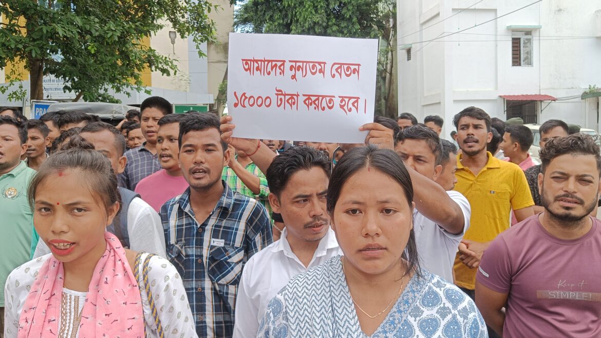 আগরতলা : বেতনভাতা বৃদ্ধির দাবিতে সরব বনমিত্ররা। অভিযোগ দীর্ঘদিন ধরে বন দপ্তরের বনমিত্র পদের কর্মীরা বিভিন্ন সুযোগ সুবিধা থেকে বঞ্চিত। তাই সোমবার একপ্রকার বাধ্য হয়ে বন দপ্তরের মুখ্য বন আধিকারিকের কাছে স্মারকলিপি জমা দিলেন বন মিত্ররা। বিভিন্ন দাবি নিয়ে বনমিত্ররা এদিন ডেপুটেশন দেয়। তাদের দাবি অর্থ মন্ত্রণালয়ের অনুমোদন দেওয়া ,বেতন ভাতা বৃদ্ধি, ন্যূনতম বেতন ১৫ হাজার টাকা ,প্রত্যেক বনমিত্র কর্মীদের নির্দিষ্ট ইউনিফর্ম দেওয়ার। এদিন এক বনমিত্র জানান বর্তমান সময়ে দ্রব্যমূল্যের আগুন দামে এই স্বল্প বেতনে সংসার প্রতিপালন করা খুবই কষ্টকর হয়ে পড়েছে।বহুবার এই বিষয়টি নিয়ে সংশ্লিষ্ট দপ্তরের আধিকারিকদের সাথে কথা বলা হয়েছে। কিন্তু এখনো পর্যন্ত এই সমস্যার সমাধান হয়নি বলে অভিযোগ জানান এক বনমিত্র। তাই যতক্ষন পর্যন্ত না এই সমস্যার সমাধান হচ্ছে ততক্ষন পর্যন্ত বনমিত্র কর্মীরা আন্দোলন চালিয়ে যাবেন বলে জানান।