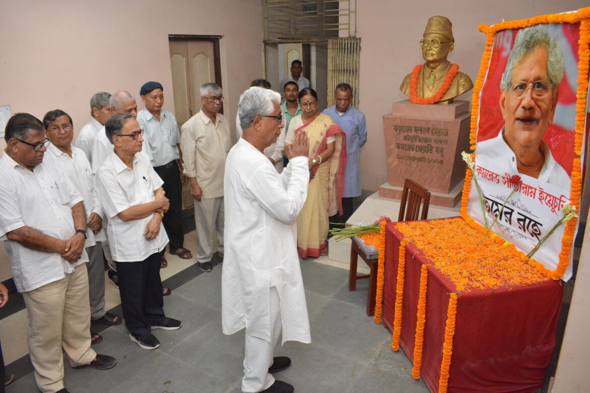 আগরতলা : সিপিএম রাজ্য দপ্তর ও ছাত্র-যুব ভবনে প্রয়াত দলের সর্বভারতীয় সাধারণ সম্পাদকের প্রতি শ্রদ্ধা। সর্বভারতীয় নেতা সীতারাম ইয়েচুরির প্রতিকৃতিতে শ্রদ্ধা নিবেদন করলেন মানিক সরকার, জিতেন চৌধুরীরা। ২৫ দিনের যুদ্ধ শেষ। দিল্লির এইমসে বৃহস্পতিবার বিকেলে প্রয়াত হন সিপিএম এর সর্বভারতীয় সাধারণ সম্পাদক সীতারাম ইয়েচুরি। মৃত্যুকালে বয়স হয়েছিল ৭২ বছর। আইসিইউ-তে রাখা হয়েছিল তাঁকে। সোমবার রাতে অবস্থার অবনতি হয়েছিল। কৃত্রিম শ্বাসযন্ত্র দিয়ে রাখা হয়েছিল। অবশেষে চিকিৎসকদের সমস্ত চেষ্টা ব্যর্থ করে দিয়ে বৃহস্পতিবার শেষ নিঃশ্বাস ত্যাগ করলেন সীতারাম ইয়েচুরি। দলের সর্বভারতীয় সাধারণ সম্পাদকের মৃত্যুতে শোকের ছায়া সিপিএম নেতা কর্মীদের মধ্যে। এদিন সন্ধ্যায় মেলারমাঠ সিপিএম রাজ্য দপ্তরে হয় শ্রদ্ধা জ্ঞাপন। উপস্থিত ছিলেন প্রাক্তন মুখ্যমন্ত্রী মানিক সরকার, সিপিএম রাজ্য সম্পাদক জিতেন চৌধুরী, মানিক দে, রমা দাস, তপন চক্রবর্তী, পবিত্র কর, অঘোর দেববর্মা, সুব্রত চক্রবর্তী সহ অন্যরা। প্রতিক্রিয়ায় সিপিএম রাজ্য সম্পাদক জিতেন চৌধুরী বলেন, দেশে অবিসংবাদী নেতা ছিলেন সীতারাম ইয়েচুরি। এমন নেতার অকাল প্রয়াণে বিরাট শুন্যতা তৈরি হল। তিনি বলেন, বাম গণতান্ত্রিক ধর্মনিরপেক্ষ আন্দোলনকে এগিয়ে নিয়ে যাওয়ার মধ্যেই ইয়েচুরিকে শ্রদ্ধা জানাবে দল। সিপিএম রাজ্য দপ্তরের পরে মেলারমাঠ ছাত্র যুব ভবনেও শ্রদ্ধা জানানো হয় সিপিএম সর্বভারতীয় সাধারণ সম্পাদক সীতারাম ইয়েচুরিকে। উপস্থিত ছিলেন প্রাক্তন মুখ্যমন্ত্রী মানিক সরকার সহ ছাত্র- যুবরা।