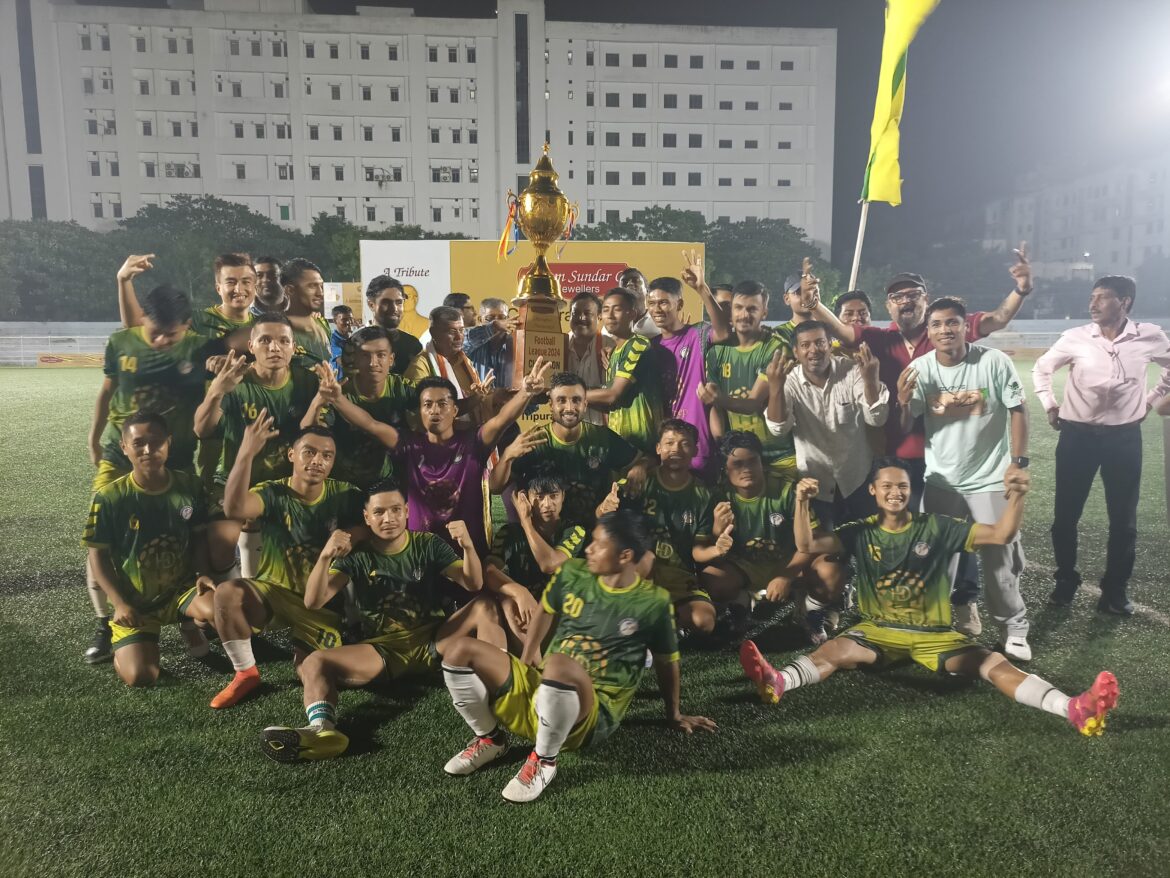 আগরতলা : এিপুরা ফুটবল এসোসিয়েশন পরিচালিত শ্যাম সুন্দর কোং চন্দ্র মেমোরিয়াল এ-ডিভিশন ক্লাব লিগ ফুটবল আসরের চ্যাস্পিয়ন এগিয়ে চলো সংঘ রার্নাস ব্লাড মাউথ ক্লাব।