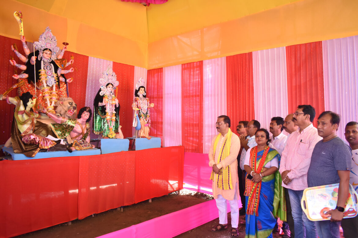 দর্শনার্থীদের জন্য ষষ্ঠীতে মণ্ডপ খুলে দেওয়া হল রাজধানীর সরোজ সংঘের