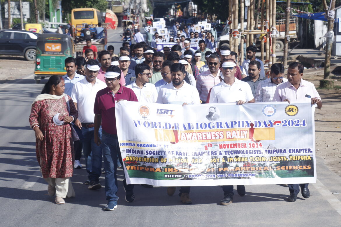 আগরতলা : সচেতনতার বার্তায় রাজধানীতে রেলি করলো রেডিওগ্রাফাররা।৮ নভেম্বর বিশ্ব রেডিওগ্রাফার দিবস। সারা দেশের সাথে ত্রিপুরা রাজ্যেও দিনটি পালন করা হয়। বিশ্ব রেডিওগ্রাফার দিবস উপলক্ষে শুক্রবার আগরতলা শহরে এক সচেতন মূলক রেলি হয়। ইন্ডিয়ান সোসাইটি অফ রেডিওগ্রাফার এন্ড টেকনোলজিস্ট ত্রিপুরা চ্যাপ্টারের উদ্যোগে এই রেলি সংগঠিত করা হয়। রেলিটি রাজধানীর রবীন্দ্র শতবার্ষিকী ভবনের সামনে থেকে শুরু হয়ে বিভিন্ন রাস্তা পরিক্রমা করে পুনঃরায় রবীন্দ্র শতবার্ষিকী ভবনের সামনে গিয়ে শেষ হয়। ইন্ডিয়ান সোসাইটি অফ রেডিওগ্রাফার এন্ড টেকনোলজিস্ট ত্রিপুরা চ্যাপ্টারের সদস্য রাকেশ দাস জানান এক্সরে, সিটি স্ক্যান, এমআরআই সম্পর্কে রাজ্যের মানুষকে সচেতন করার লক্ষ্যে এদিনের কর্মসূচী গ্রহণ করা হয়েছে। রেলি ঘিরে শহরে বেশ সাড়া পড়ে।