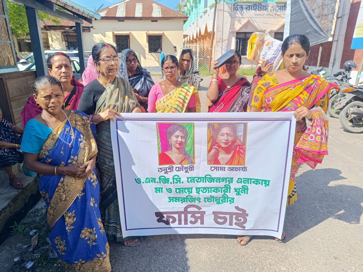 - আগরতলা : শাশুড়ি- স্ত্রী খুনে অভিযুক্তের কঠোর শাস্তির দাবি জানালেন এলাকাবাসী ও স্থানীয়য় লোকজন। তারা সোমবার আদালত চত্বরে এসে বিক্ষোভ দেখায়।১৩ অক্টোবর আমতলি থানার অন্তর্গত ওএনজিসি নেতাজীনগর এলাকায় স্ত্রী ও শাশুড়িকে কুপিয়ে হত্যা করে সমরজিৎ চৌধুরী নামে এক ব্যক্তি। পুলিশ রিমান্ড শেষে সোমবার অভিযুক্তকে আদালতে সোপর্দ করে পুলিশ। এদিন মৃত তনুশ্রী চৌধুরীর বোন মা ও বোনের হত্যাকারির ফাঁসির দাবিতে এলাকাবাসিকে নিয়ে আদালত চত্বরে আসেন। মৃত তনুশ্রী চৌধুরীর বোনের অভিযোগ তনুশ্রীকে স্বামীর বাড়িতে স্বামী সমরজিৎ চৌধুরী শারীরিক ও মানসিক নির্যাতন করতো। তাই তনুশ্রী বাধ্য হয়ে মায়ের কাছে আশ্রয় নেয়। কিন্তু ১৩ অক্টোবর সমরজিৎ চৌধুরী শ্বশুর বাড়িতে এসে তনুশ্রী ও তার মাকে কুপিয়ে হত্যা করেছে। তাই তিনি অভিযুক্ত সমরজিৎ চৌধুরীর ফাঁসির দাবি জানান তারা।