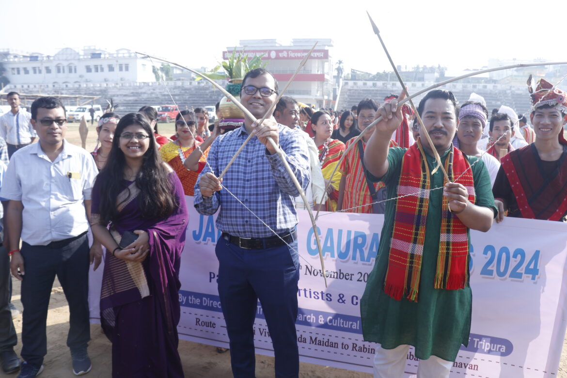 আগরতলা : সারা দেশের সঙ্গে রাজ্যেও যথাযোগ্য মর্যাদায় জনজাতি গৌরব দিবস পালন করা হয়। শুক্রবার চতুর্থ জনজাতি গৌরব দিবস উপলক্ষে সরকারি ভাবে একাধিক কর্মসূচির আয়োজন করা হয়। তারই অঙ্গ হিসাবে এদিন সকালে রাজধানীতে এক রেলির আয়োজন করা হয়। রেলিটি স্বামী বিবেকানন্দ ময়দান থেকে শুরু হয়ে রবীন্দ্র শতবার্ষিকী ভবনের সামনে গিয়ে শেষ হয়। রেলিতে উপস্থিত ছিলেন পশ্চিম জেলার জেলা শাসক ডাঃ বিশাল কুমার, বিশিষ্ট সমাজসেবী বিপিন দেববর্মা সহ অন্যান্যরা। পশ্চিম জেলার জেলা শাসক জানান দেশ জুড়ে এদিন জনজাতি গৌরব দিবস পালন করা হচ্ছে। ভগবান বিরসা মুণ্ডার জন্মদিন উপলক্ষ্যে জনজাতি গৌরব দিবস পালন করা হয়। এদিনের রেলিতে প্রচুর লোক অংশ নেন।