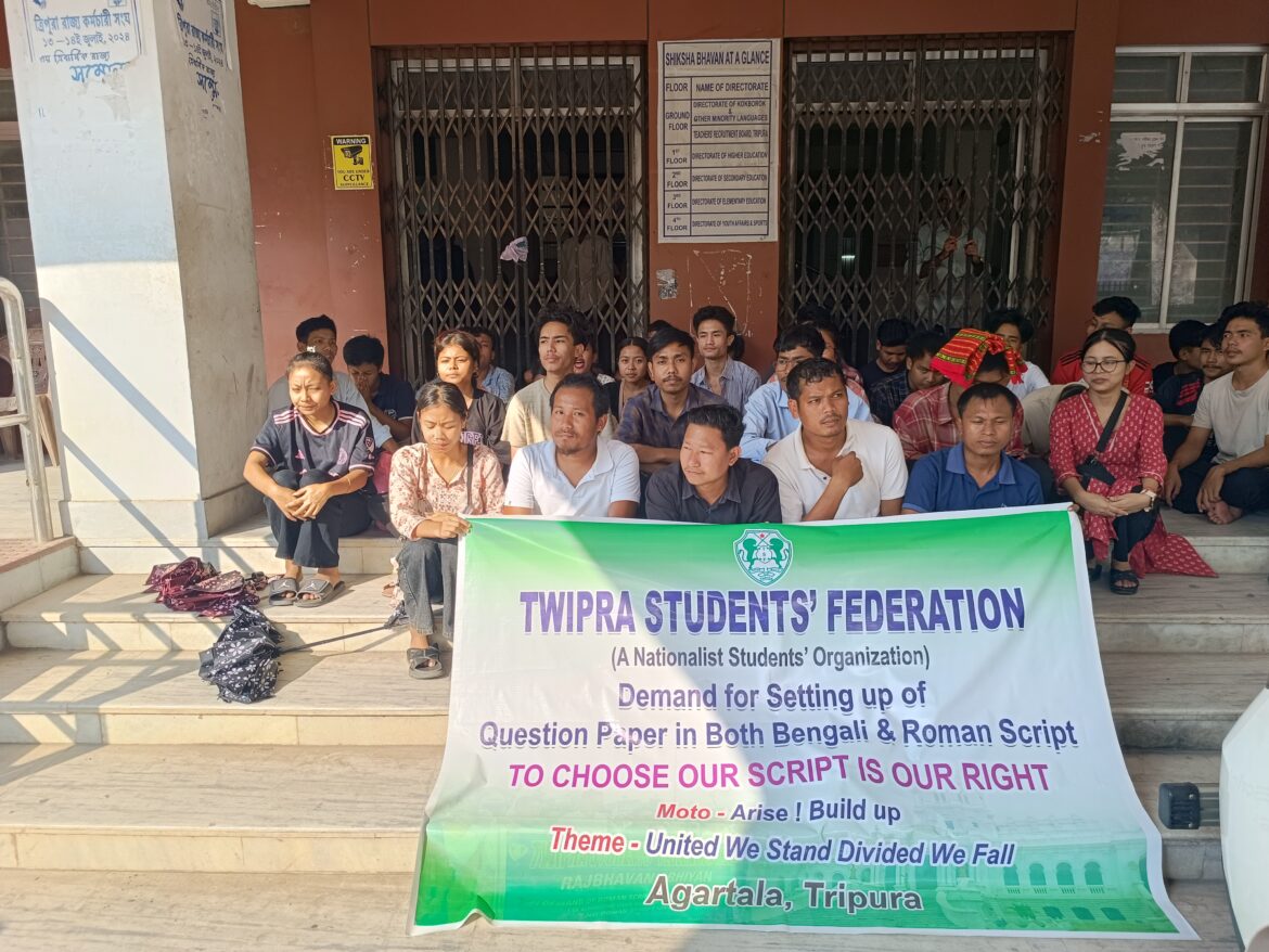 আগরতলা : শিক্ষাভবনের গেটে তালা ঝুলিয়ে আন্দোলনে টি এস এফ। ককবরক ভাষায় রোমান স্ক্রিপ্ট চালুর দাবিতে আন্দোলন চালিয়ে যাচ্ছে জনজাতি বিভিন্ন সংগঠন। ফের আন্দোলনে টি এস এফ। তুইপ্রা স্টুডেন্ট ফেডারেশন শুক্রবার আবারো আন্দোলনে নামল। এদিন সংগঠনের তরফে বিক্ষোভ দেখানো হয় অফিস লেন শিক্ষা ভবনে মাধ্যমিক শিক্ষা অধিকর্তার অফিসের সামনে। তাদের দাবির মধ্যে রয়েছে ত্রিপুরা মধ্যশিক্ষা পর্ষদের প্রশ্ন পত্র বাংলার পাশাপাশি রোমান স্ক্রিপ্টে চালু করার। সংগঠনের কর্মীরা গেট বন্ধ করে বিক্ষোভ দেখায়।এদিন তারা মধ্যশিক্ষা পর্ষদেও ডেপুটেশন দেয়। এর আগেও একই দাবিতে রাজ্যের বিভিন্ন জায়গায় আন্দোলন সংগঠিত করেছে সংগঠন। কর্তৃপক্ষ কি পদক্ষেপ নেয় তাই দেখার।