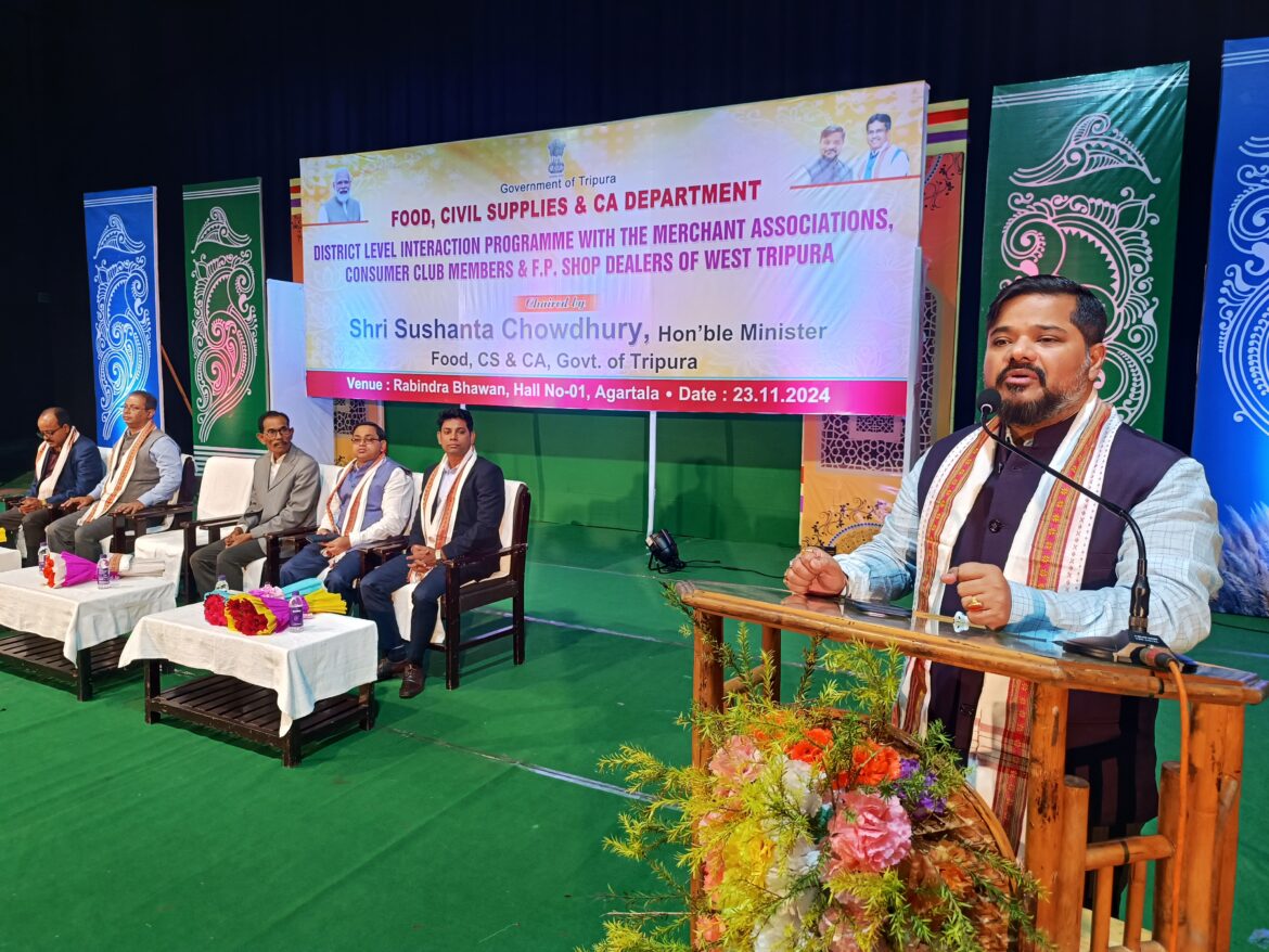 আগরতলা : সুযোগ পেলেই একাংশ ব্যবসায়ী বাজারে নিত্য প্রয়োজনীয় সামগ্রীর কৃত্তিম সংকট তৈরি করে বলে অভিযোগ। তাই এসব বন্ধে আলোচনা সভা।খাদ্য দপ্তরের উদ্যোগে পশ্চিম জেলার বিভিন্ন বাজারের ব্যবসায়ী, কনজিউমার ক্লাবের মেম্বার, মার্চেন্ট অ্যাসোসিয়েশন ও রেশন সপ ডিলারদের নিয়ে শনিবার এক গুরুত্বপূর্ণ বৈঠক হয়। রাজধানীর রবীন্দ্র শতবার্ষিকী ভবনে আয়োজিত এদিনের বৈঠকে উপস্থিত ছিলেন খাদ্য দপ্তরের মন্ত্রী সুশান্ত চৌধুরী, খাদ্য দপ্তরের অধিকর্তা, পশ্চিম জেলার বিভিন্ন মহকুমার মহকুমা শাসক সহ অন্যান্য আধিকারিকরা। মন্ত্রী সুশান্ত চৌধুরী জানান খাদ্য দপ্তর সিদ্ধান্ত গ্রহণ করেছে প্রতিটি জেলায় জেলার সকল বাজারের ব্যবসায়ী ও রেশন সপ ডিলারদের নিয়ে জেলা ভিত্তিক আলোচনা সভা করা হবে। সেই মোতাবেক এইদিন পশ্চিম জেলা ভিত্তিক আলোচনা সভা হয়। বিভিন্ন সময় দেখা যায় বিভিন্ন জায়গায় নিত্য প্রয়োজনীয় খাদ্য সামগ্রীর কৃত্রিম সঙ্কট সৃষ্টি করা হয়। আসাম-আগরতলা শহরে যানবাহন চলাচলে ব্যাঘাত ঘটলে বাজারে খাদ্য সামগ্রীর কৃত্রিম সঙ্কট সৃষ্টি করার চেষ্টা করা হয়। তাই এই ধরনের আলোচনা সভা করার সিদ্ধান্ত গ্রহণ করা হয়েছে বলে জানালেন খাদ্য মন্ত্রী।