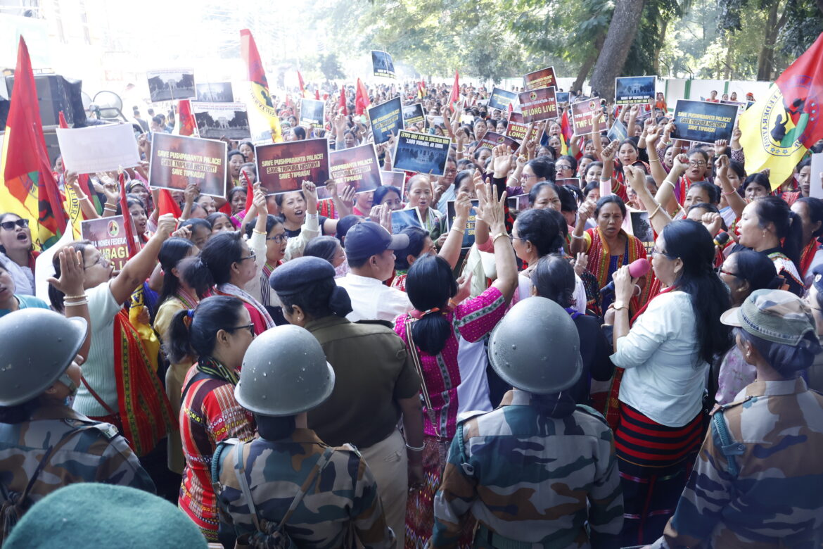 রাজধানীতে মিছিল করে সার্কিট হাউসের সামনে গণঅবস্থান তিপ্রা ওমেন ফেডারেশনের