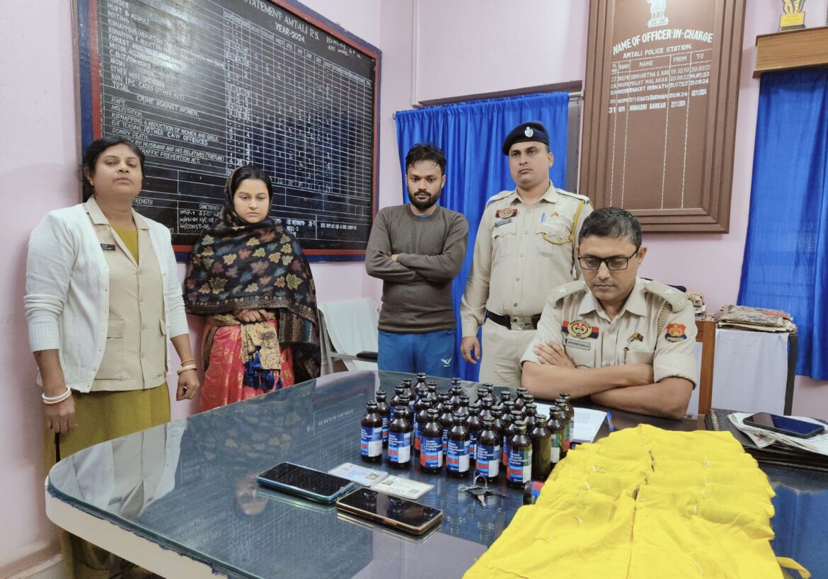 আগরতলা : এক মহিলা সহ আটক ফেন্সিডিল। আমতলী থানার পুলিস ৫০ বোতল ফেন্সিডিল সহ বহিঃরাজ্যের এক মহিলাকে আটক করে। ধৃত মহিলার বাড়ি বিহারের কাটোয়া জেলায়। অপরদিকে ধৃত অটো চালকের নাম অনিপ সূত্রধর। তার বাড়ি ত্রিপুরা রাজ্যে। আমতলি থানার এক পুলিশ অফিসার জানান বৃহস্পতিবার সকালে আমতলি থানার পুলিশ সিদ্ধি আশ্রম রেল স্টেশন রোডে কর্তব্যরত অবস্থায় সন্দেহজনক একটি অটো আটক করে। অটোতে ছিলেন ধৃত মহিলা।অটো চালক ও মহিলাকে জিজ্ঞাসাবাদ চালানো হলে তাদের কথায় অসংগতি ধরা পড়ে। এতে পুলিশ কর্মীদের সন্দেহ হয়। তখন আইন মেনে অটো সহ মহিলাকে তল্লাসি চালানো হয়। তল্লাসি চালানোর সময় মোট ৫০ বোতল ফেন্সিডিল উদ্ধার হয়। জিজ্ঞাসাবাদে মহিলা স্বীকার করে সে আগেও এই ভাবে ফেন্সিডিল পাচার করেছিল। অটো চালক অনিপ সুত্রধর এই ফেন্সিডিল পাচারের সাথে যুক্ত। ধৃতদের তিন দিনের পুলিশ রিমান্ডের আর্জি জানিয়ে আদালতে সোপর্দ করল আমতলি থানার পুলিশ।এই ঘটনায় ফের প্রমাণ শুধু পুরুষ নয়, মহিলারাও নেশার ব্যবসায় যুক্ত।