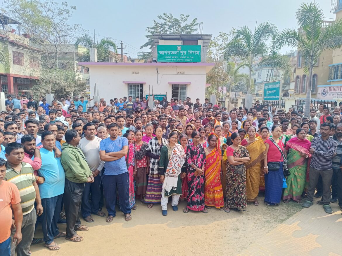 আগরতলা : বিকল্প ব্যবস্থা করে উচ্ছেদ করার দাবি জানালেন রাজধানীর লেক চৌমুহনী এলাকার ক্ষুদ্র ব্যবসায়ীরা। এই দাবিতে আন্দোলনে নামলেন কয়েকশো ক্ষুদ্র ব্যবসায়ী। পুর নিগমের ১৯ নম্বর ওয়ার্ড অফিসে গিয়ে তারা বিক্ষোভ দেখান।স্মার্ট সিটি প্রকল্পে আগরতলা পুর নিগমের বিভিন্ন বাজার গুলিকে উন্নত করা হচ্ছে। তারই অঙ্গ হিসাবে লেইক চৌমুহনী বাজারও উন্নত করার উদ্যোগ গ্রহণ করা হয়েছে। সম্প্রতি পুর নিগমের মেয়র দীপক মজুমদার বাজারের ব্যবসায়ী কমিটির সাথে এই বিষয়ে বৈঠক করেন।বাজারের ব্যবসায়ীদের সহযোগিতা করার আহ্বান জানান। তারপরই বুধবার থেকে লেইক চৌমুহনী বাজারে অবৈধভাবে নির্মাণ করা দোকান ঘর ভেঙ্গে ফেলার জন্য পুর নিগম থেকে মাইকিং করা শুরু হয়। পুর নিগম থেকে মাইকিং করার পর মাথায় হাত বাজারের ক্ষুদ্র ব্যবসায়ীদের। এক প্রকার বাধ্য হয়ে বৃহস্পতিবার বাজারের ক্ষুদ্র ব্যবসায়ীরা পুর নিগমের ১৯ নং ওয়ার্ডের কর্পোরেটরের দ্বারস্থ হয়। বাজারের ক্ষুদ্র ব্যবসায়ীদের বক্তব্য লেইক চৌমুহনী বাজারের বাধের পাড়ে দীর্ঘ বছর ধরে অস্থায়ী ঘর নির্মাণ করে তারা ব্যবসা করে আসছে। সেখানে ব্যবস্থা করে যে আয় হয় তা দিয়ে তাদের সংসার চলে। প্রায় ৫ শতাধিক ক্ষুদ্র ব্যবসায়ী রয়েছে যারা এই ভাবে ব্যবসা করে সংসার চালায়। কিন্তু বিকল্প কোন ব্যবস্থা না করে তাদের দোকান ভেঙ্গে দেওয়া হলে তারা রোজগার হীন হয়ে পড়বে। তখন তাদের পক্ষে সংসার চালানো দায় হয়ে দাঁড়াবে। তাই তাদের দাবি তাদেরকে বিকল্প ব্যবস্থা করে দেওয়া হোক, তারপর তারা তাদের অস্থায়ী দোকান ঘর ভেঙ্গে ফেলবে।এখন দেখার কর্তৃপক্ষ কি ব্যবস্থা নেয়?